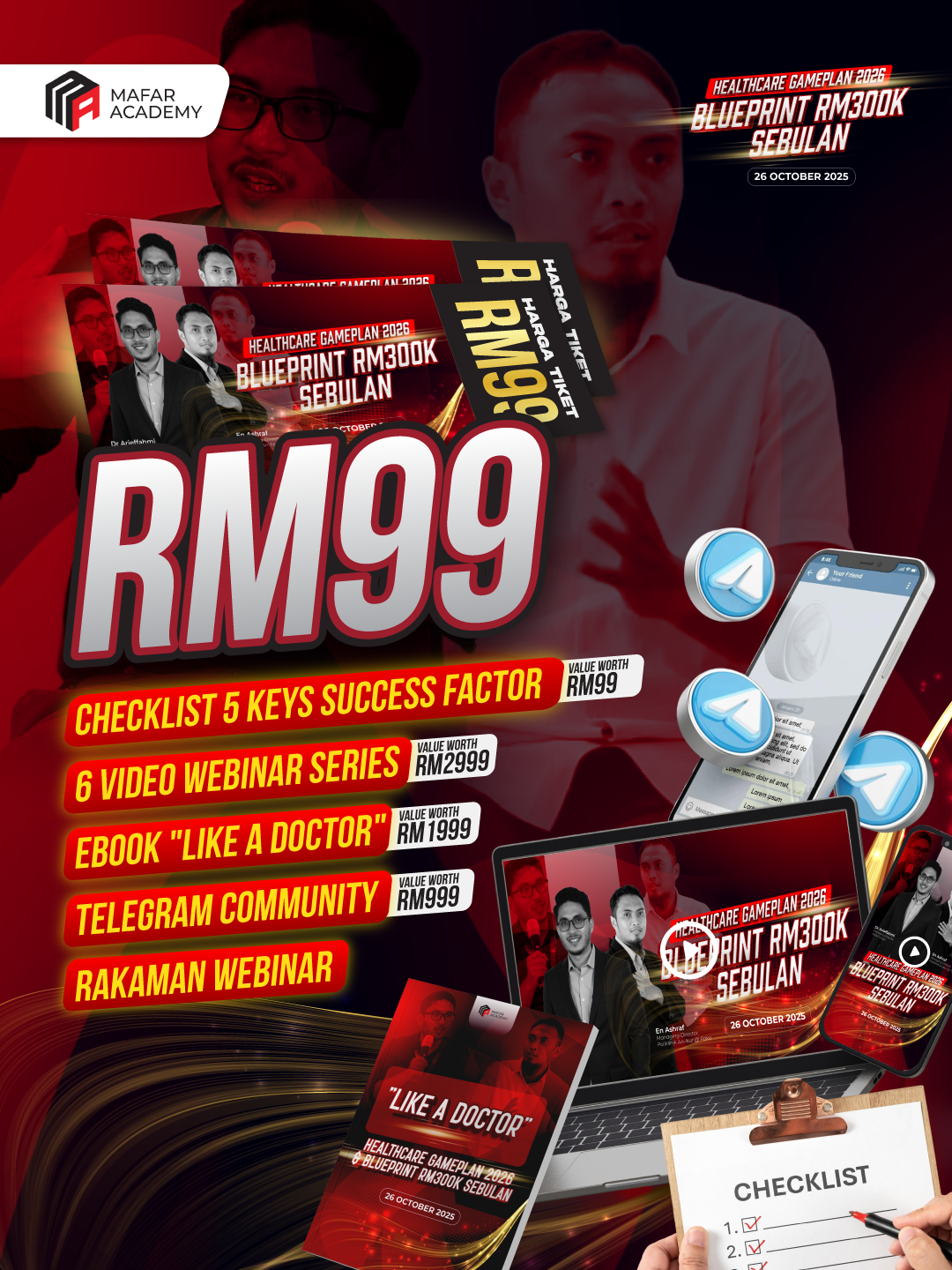 Dalam webinar ini juga, peserta akan diperkenalkan kepada Healthcare Gameplan 2026, iaitu pelan tindakan lengkap untuk bantu klinik rancang arah tuju bisnes tahun depan dengan lebih jelas dan tersusun.